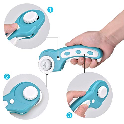 - Cortador redondo para papel y tela con 3 Cuchillas de Repuesto para cortador giratorio, y materiales para cortar tela, cuero scrapbooking.